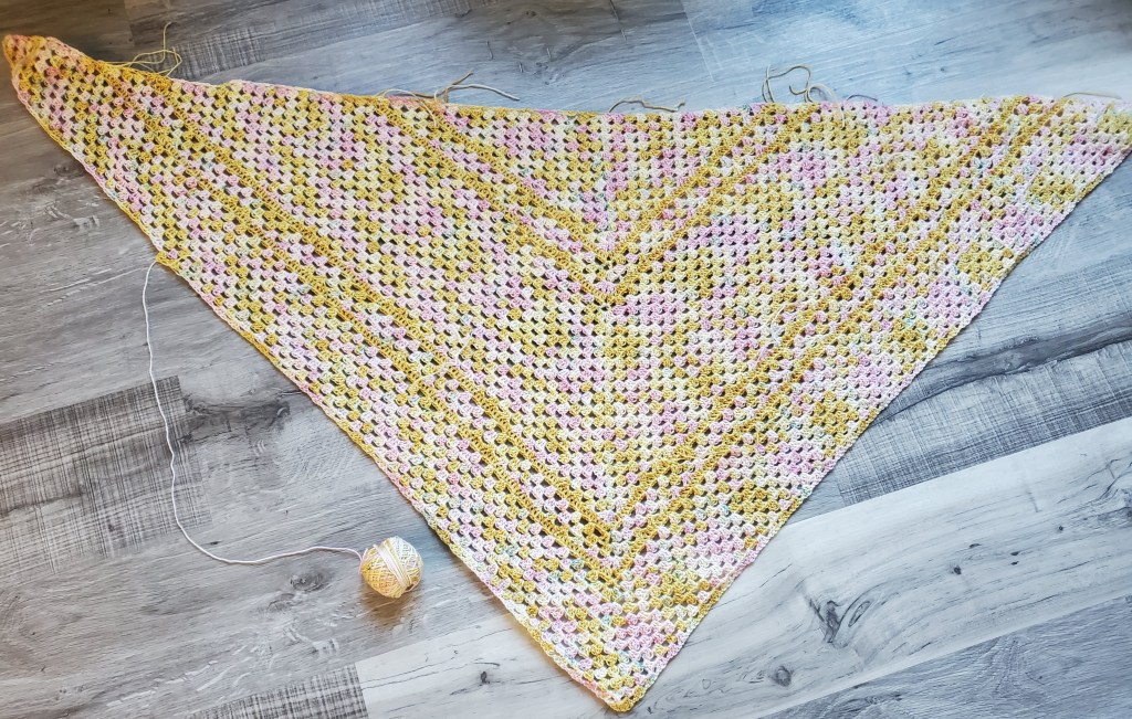 I’m actually nearing the end of the Garden Party Shawl!