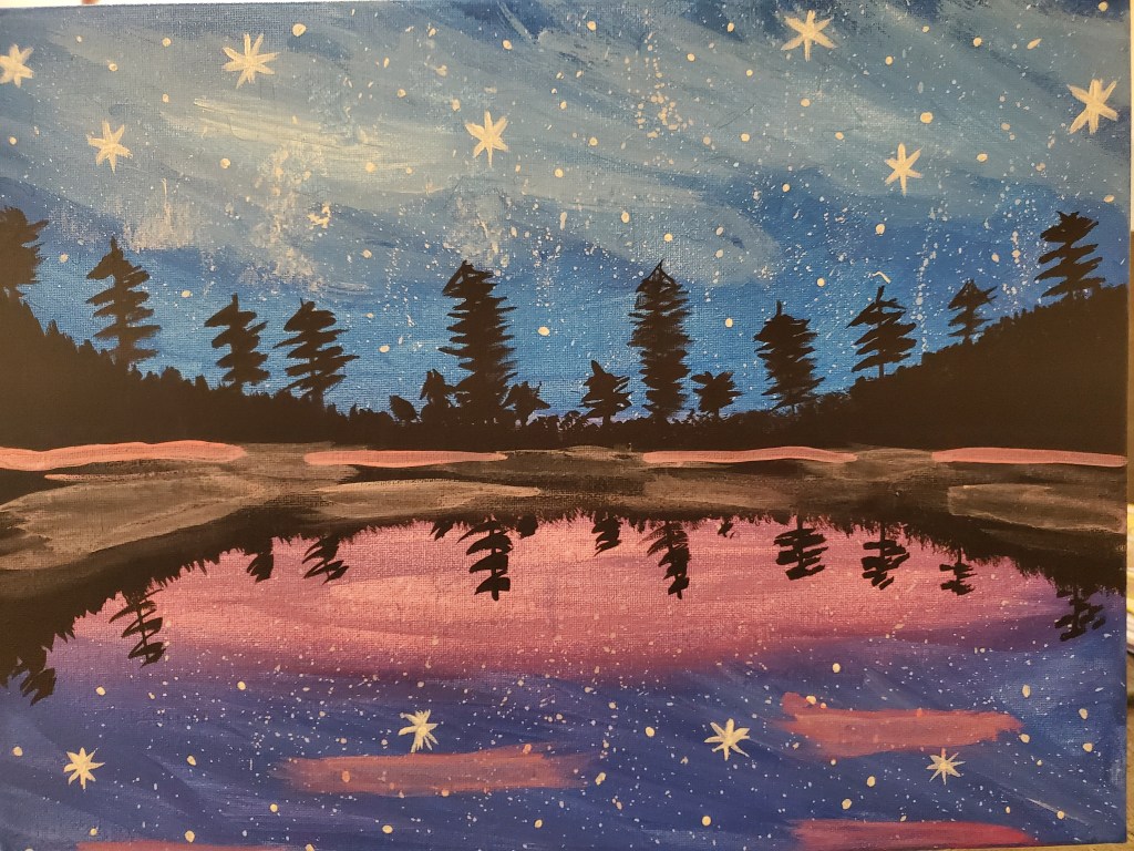 Last Saturday I did a virtual painting session with a friend. I think it was inexplicably turning out well, until the very end when I messed everything up.