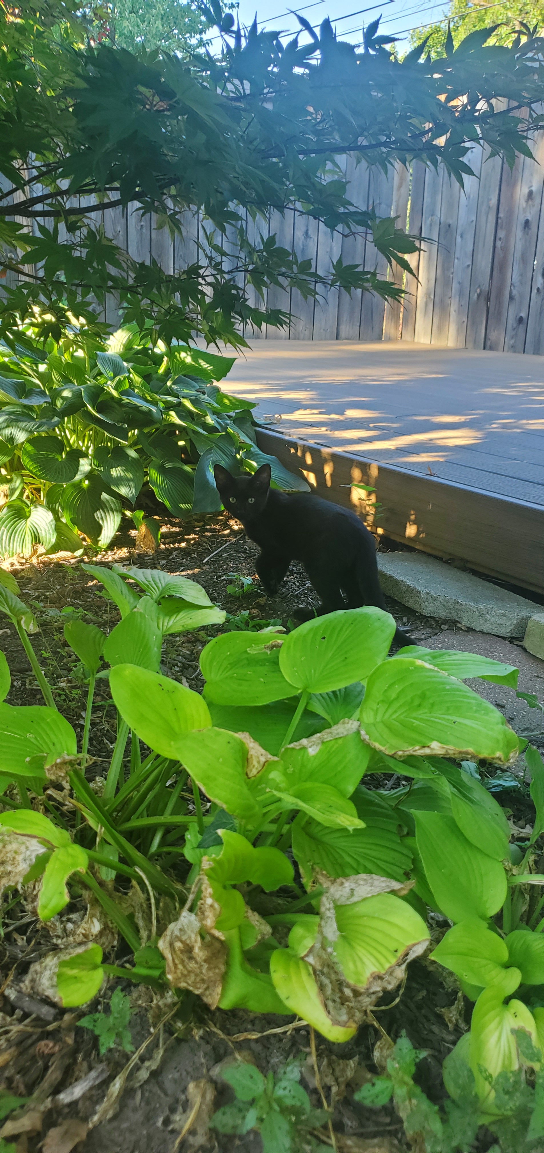A day before I left on my trip, I saw another cat in our backyard. She was different – a little smaller, with marbled brown fur like a Bengal and possessing a grumpy look. I muted my mic since I was on a Teams call and started pounding my office window. She wasn’t as easily spooked as the other cat, staring impassively at me as I continued tapping and yelling. Finally, she bolted.