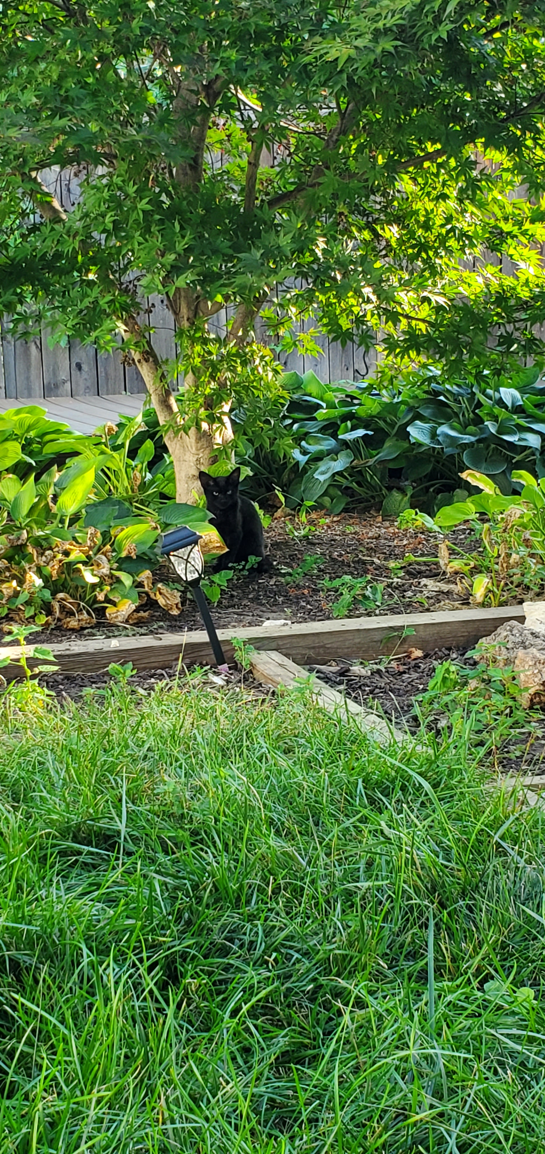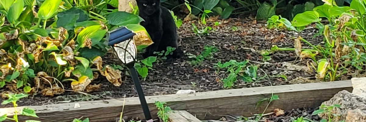 As I walked back into my kitchen, I turned and instinctively looked out the window. Jiji was back in the yard, lazily swatting at the grass. Then she scurried under the deck.