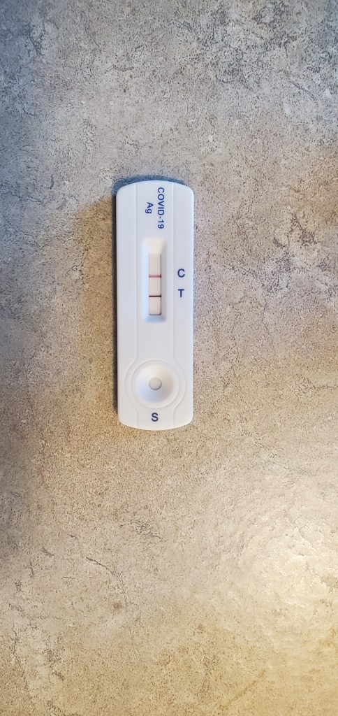 “Well,” I said, staring at the test. “Shit.” I grabbed a mask and went upstairs to tell Husband. That’s just the news that you want to wake up your loved ones with. HEY! YOU KNOW THAT SUPER INFECTIOUS PANDEMIC VIRUS THAT WE’VE AVOIDED CATCHING? GUESS WHAT? I BROUGHT IT HOME AND HAVE BEEN SPEWING IT EVERYWHERE AND YOU’RE PROBABLY GOING TO GET SICK TOO. YAYYYYYYYYYYYYY.