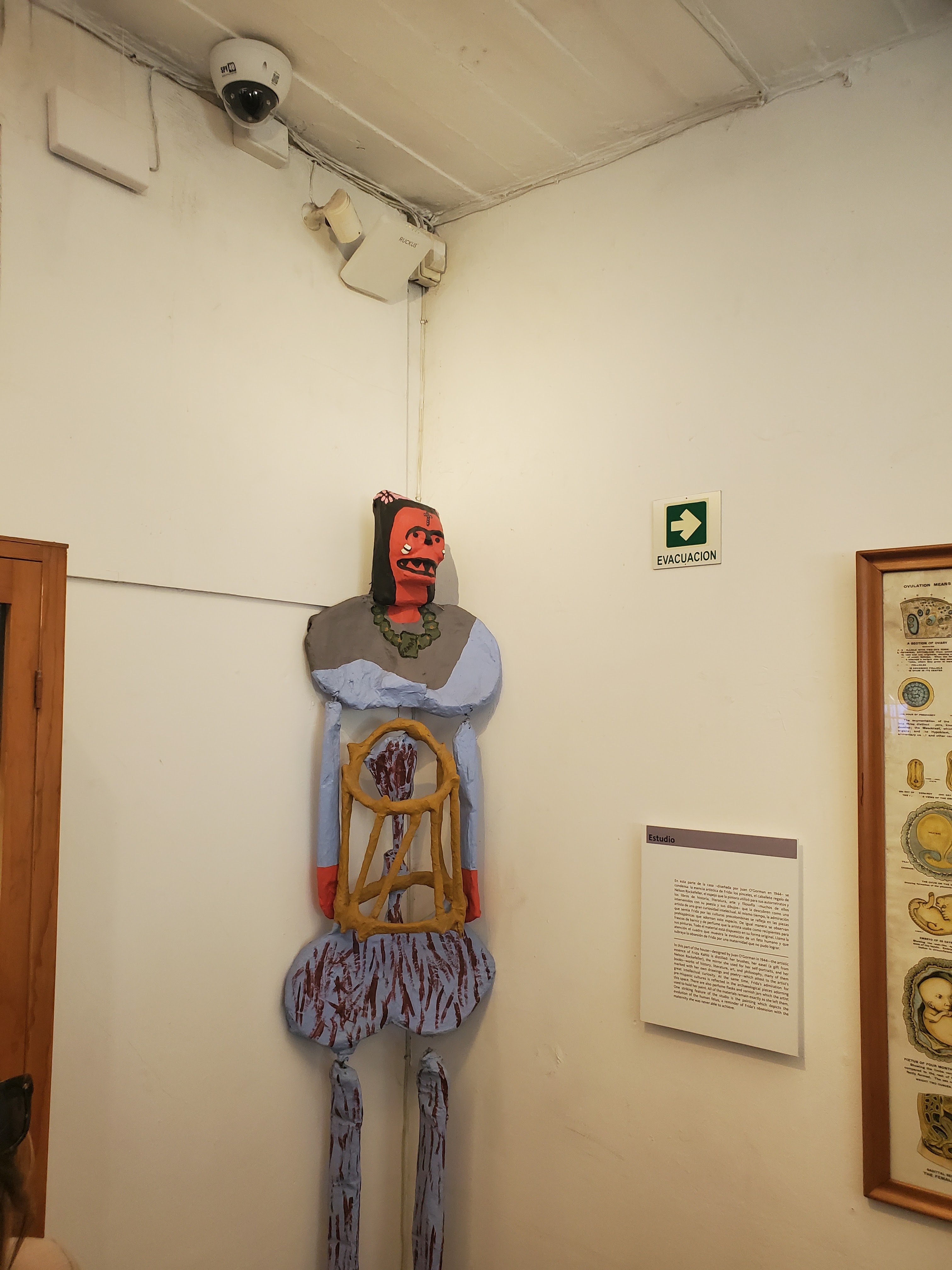 Prior to the museum tour, a Frida Kahlo expert gave our travel group a short lecture about her life, her passions, her art, and her relationship with Diego Rivera. Walking through the museum, I was able to observe several consistent themes thread throughout Frida’s work, including her relationship with Rivera, a childhood battle with polio that had left her disabled, surviving a nearly fatal bus accident at eighteen that had left her with severe injuries, and experiencing several miscarriages.