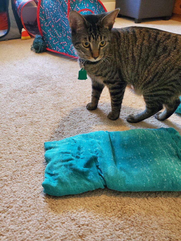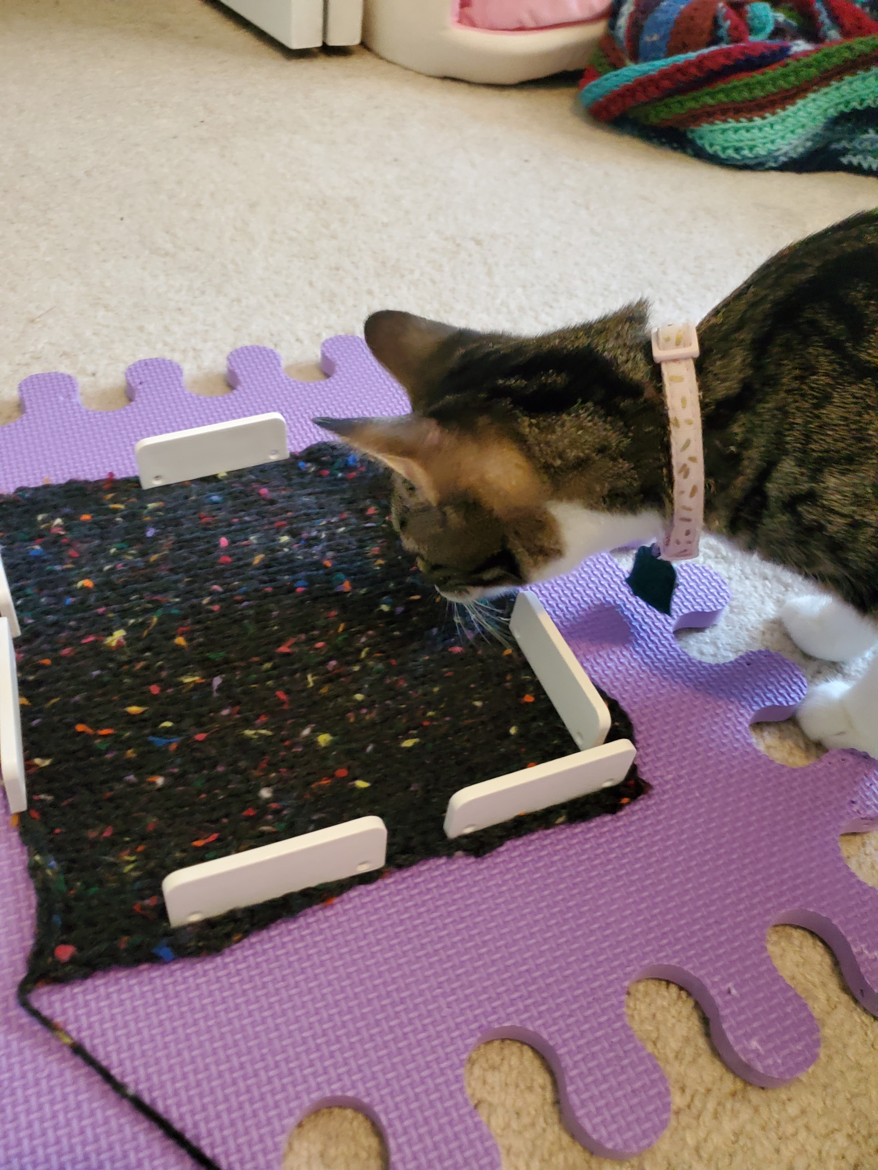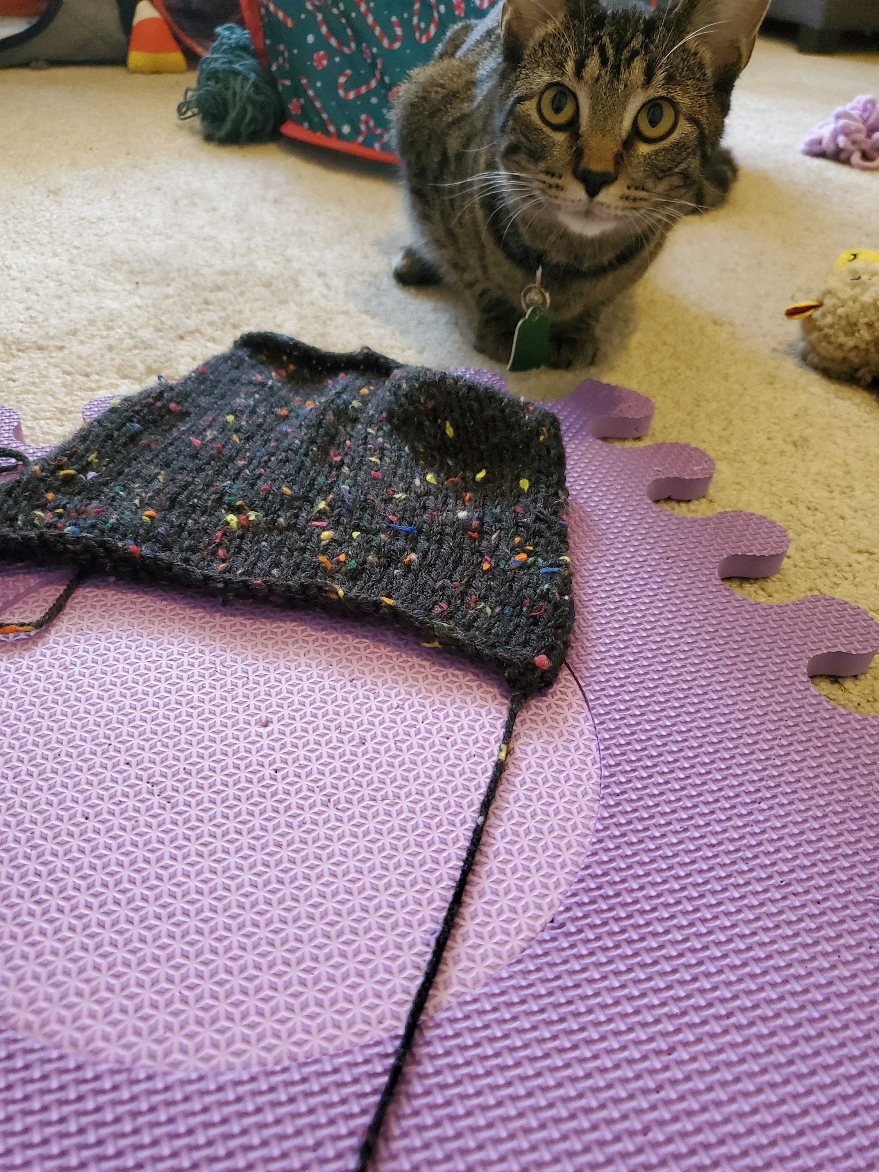 If you are blocking your gauge swatch with kittens, this is when you realize that you cannot leave this blocking mat unsupervised.