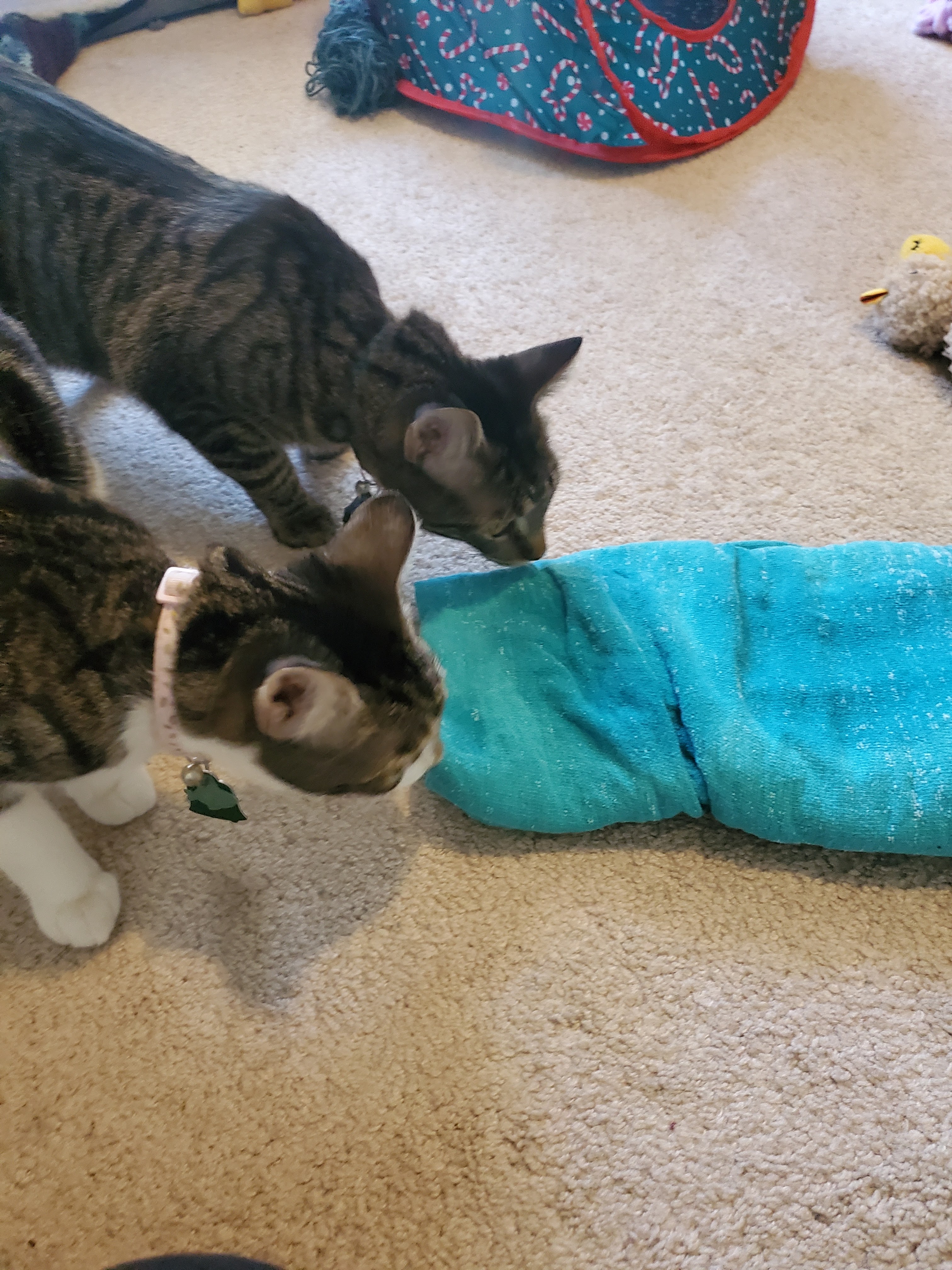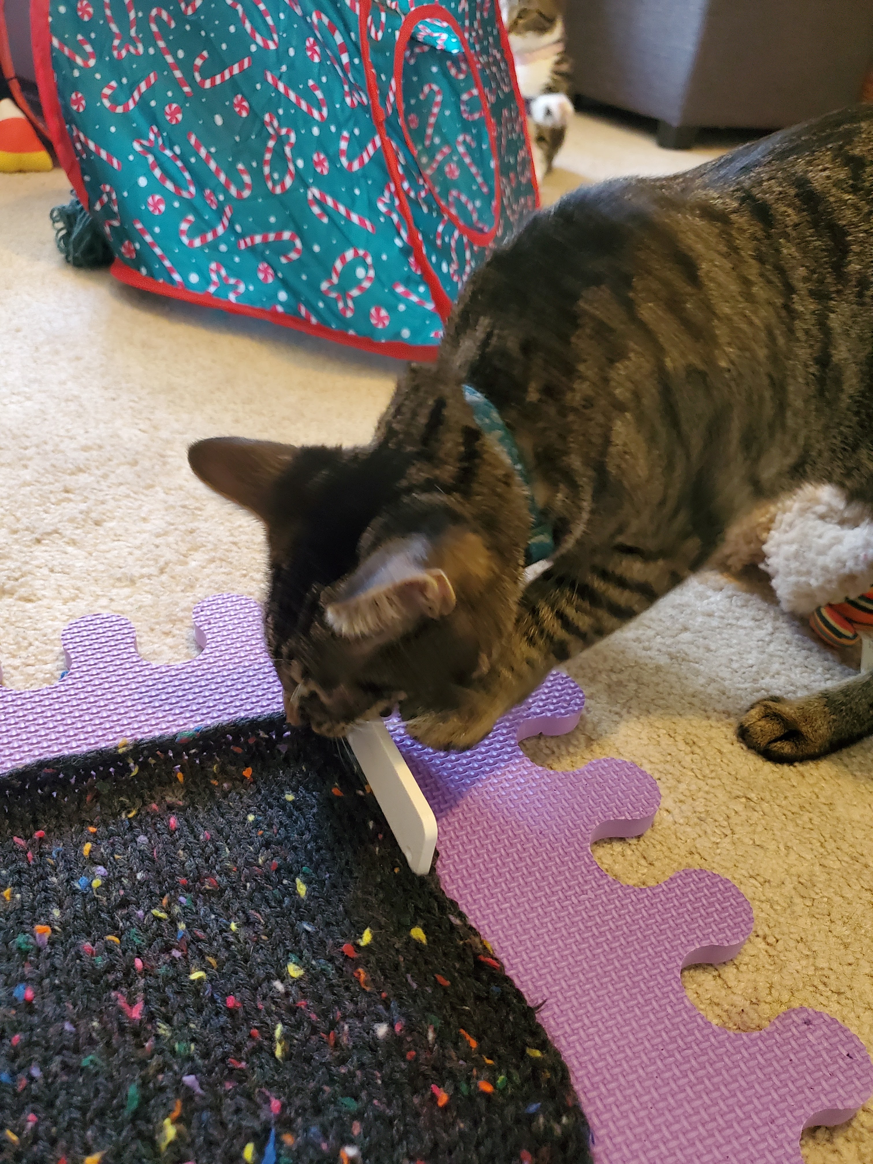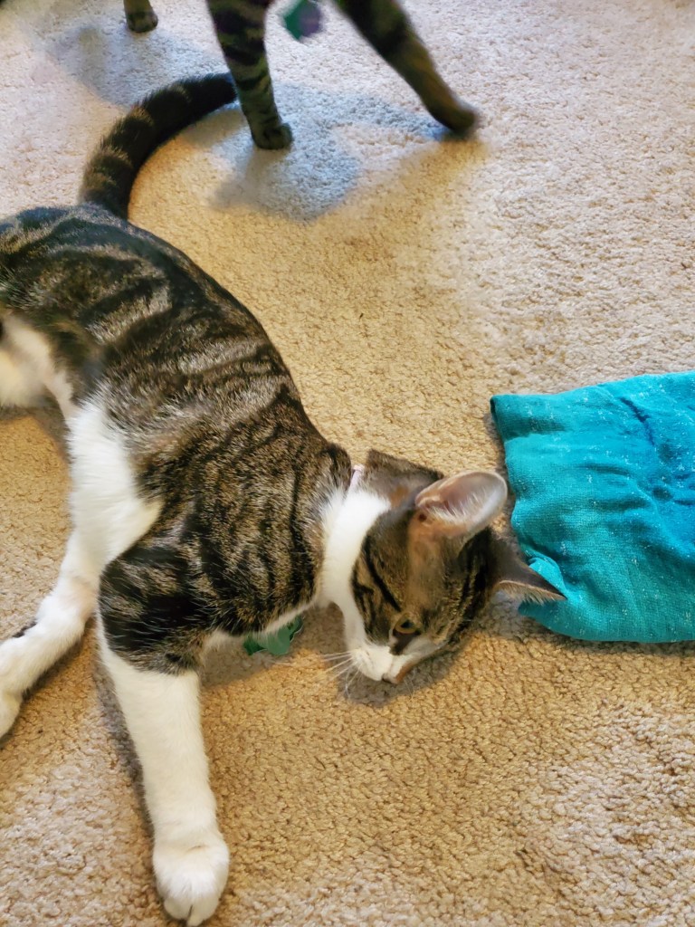 If you are blocking your gauge swatch with kittens, this is when you realize that you cannot leave this blocking mat unsupervised.