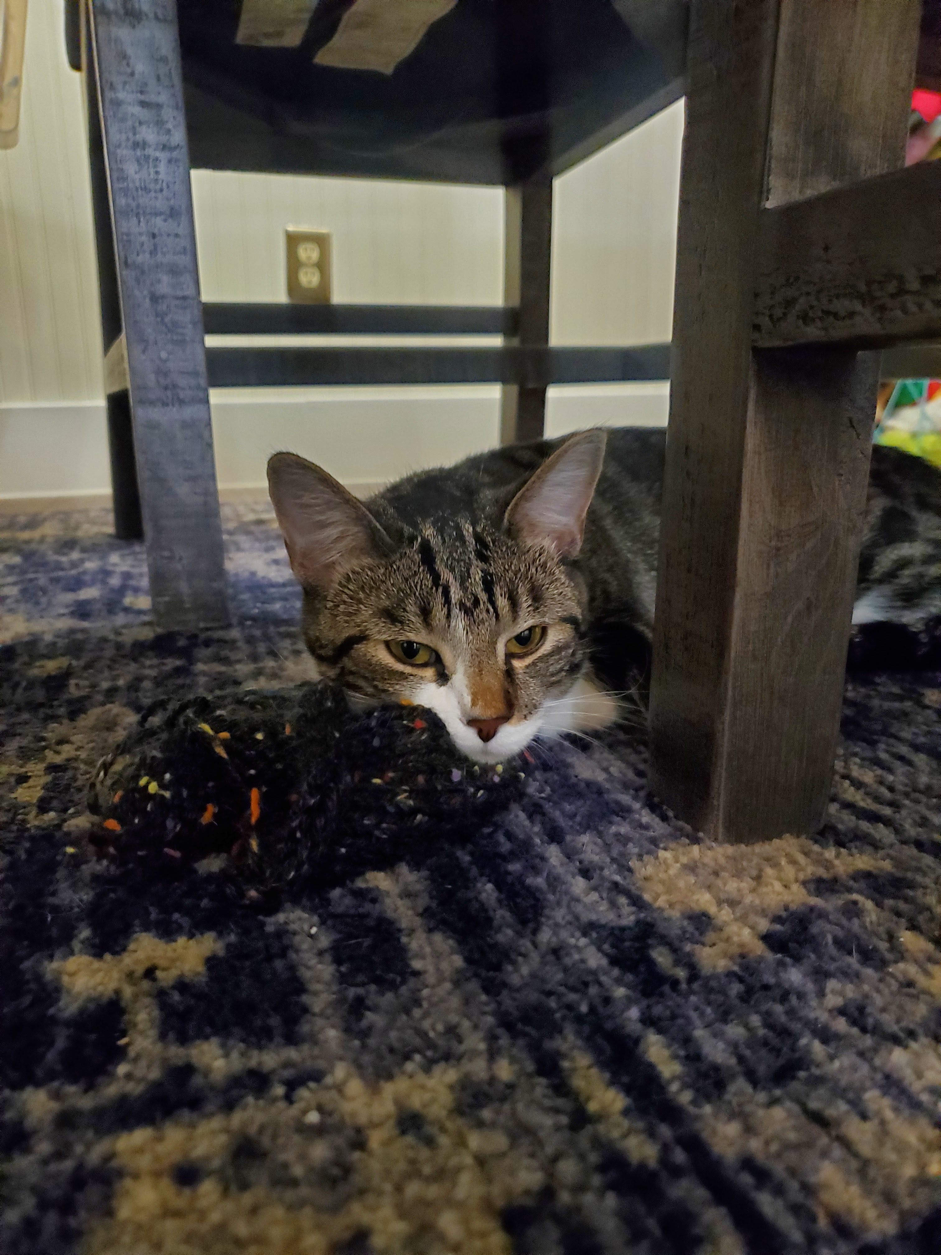 1. Your embroidery piece is just beautiful and I am so happy to hear the pets are getting along. Katie was just here getting me, Fiona, and the outdoor cats winterized. We have caught two cats. One was a tabby female and we are not sure exactly which cat she is and she managed to hide out in the garage and we can’t find her. We caught Alpha (the beautiful silver tabby) and he is now neutered. Unfortunately, we have not been able to get his tuxedo sister Crypto. And Crypto really needs to see a vet. She has been in heat and is no doubt pregnant now. We tried to catch her today without success. She has the misformed arm and now her back leg is hurt. I have not seen her eat and am so afraid she won’t make it through this cold spell. We did open the garage where there is a radiator style space heater, the water heater, warm pads, food, water, and a food dispenser. Crypto, Alpha, and Skinny Momma have competition from other cats so it not a certainty they will be the ones to use the warm garage.