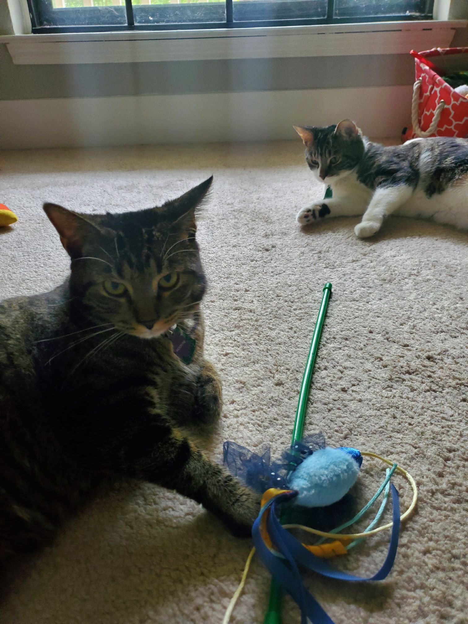 Last night Mittens overheard my brother talking on speakerphone, so she stole the phone from the couch and ran to the cat room with it. I don’t think I’ve laughed that hard in a long time.