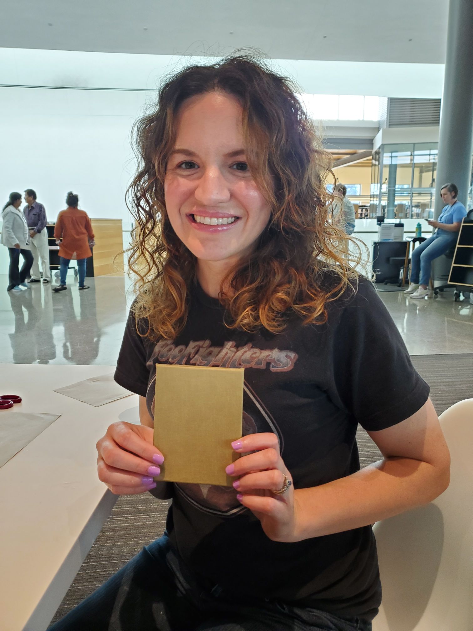 I took Husband with me to expore the festival. I skipped the craft panels, but we checked out booths with local authors and took a bookmaking workshop! I’ve been wanting to take classes with the Austin Book Arts Center for quite awhile, so was excited to take this free class. I’ll admit that I nearly left because the classes were running behind and I was getting impatient. BUT I’m really glad that we stayed to make a book. I tried to take process photos but the lighting was terrible.