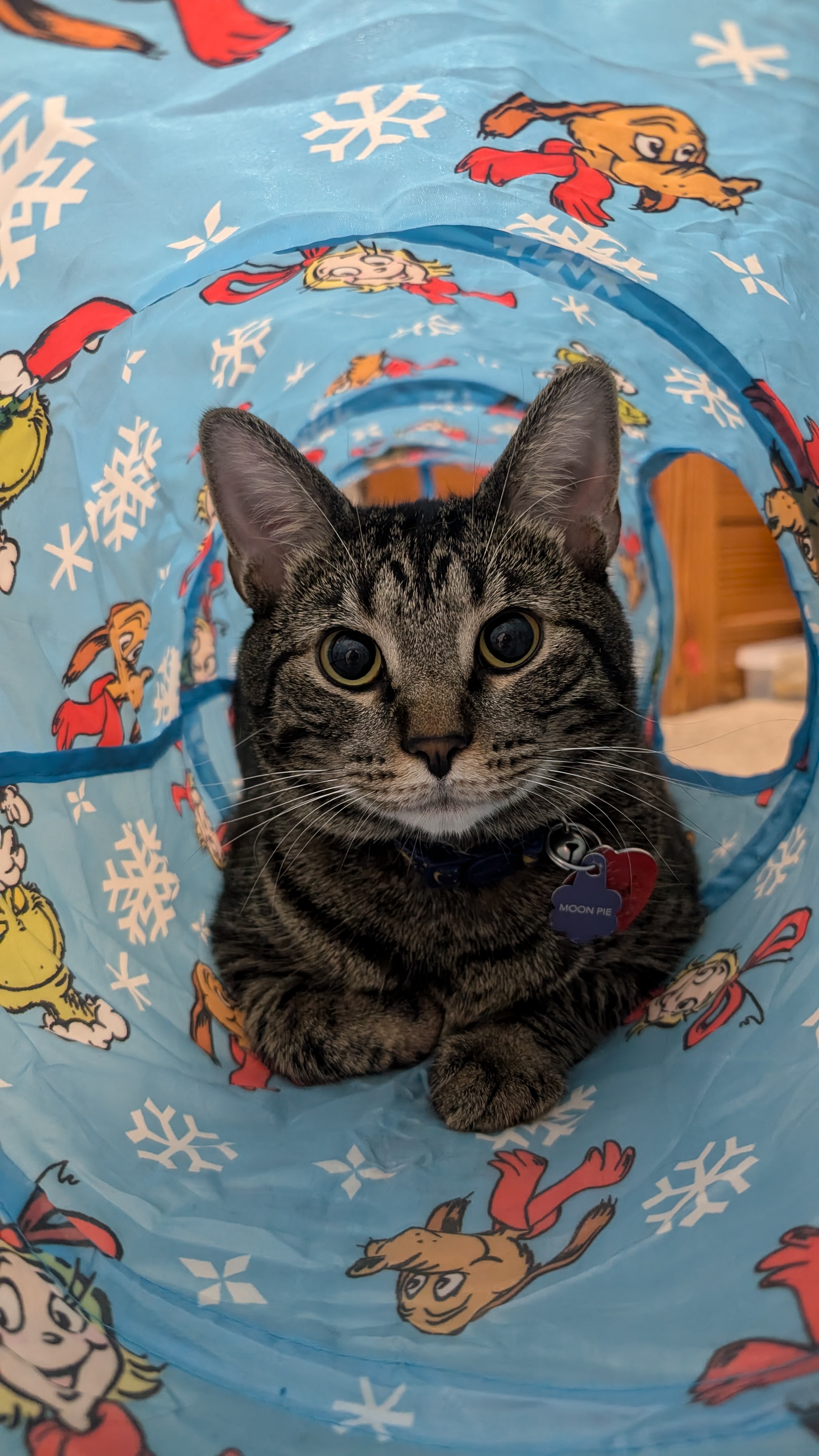 - Moon Pie girl got a new deluxe tunnel. I mean, the tunnel was supposed to be for both cats, but obviously Queen Moon Pie put dibs on it and it is now Her Tunnel.